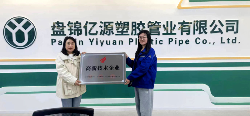 2024年3月23日下午,盤錦市經信辦將高新技術企業牌匾送至盤錦億源塑膠管業有限公司。